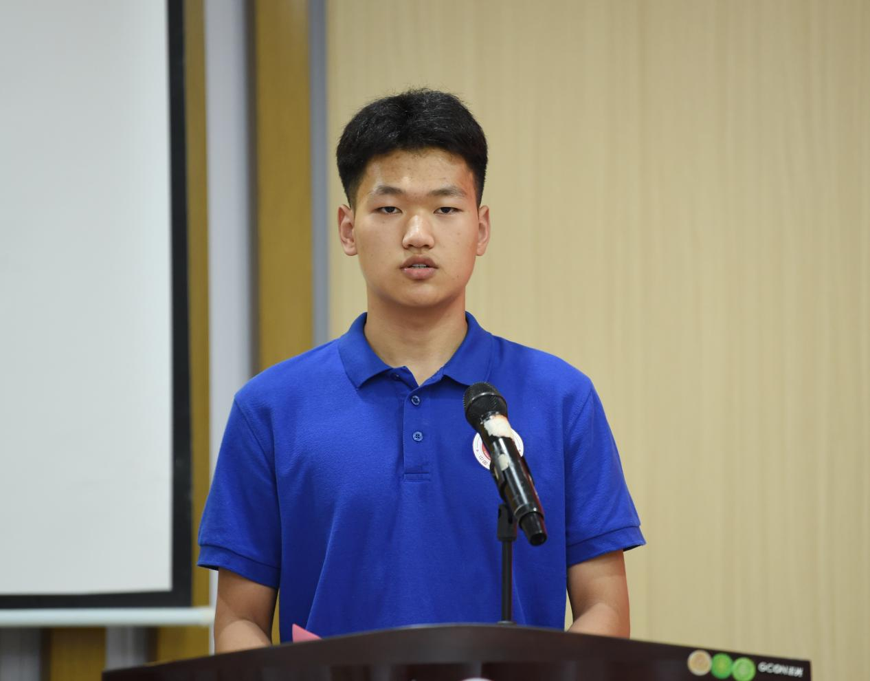 随后,2025级研究生新生代表国际商务专硕王梓帆发言。他感谢公司为大家提供了宝贵的成长机会,并以“荷”为喻,勉励同学们如荷叶般顽强生长,不畏风雨。他呼吁大家秉持“勤恳朴诚,厚学致新”的校训,树立理想、勇于担当,将个人成长与国家发展相结合,以奋斗书写青春,做有理想、敢担当、能吃苦、肯奋斗的新时代青年。