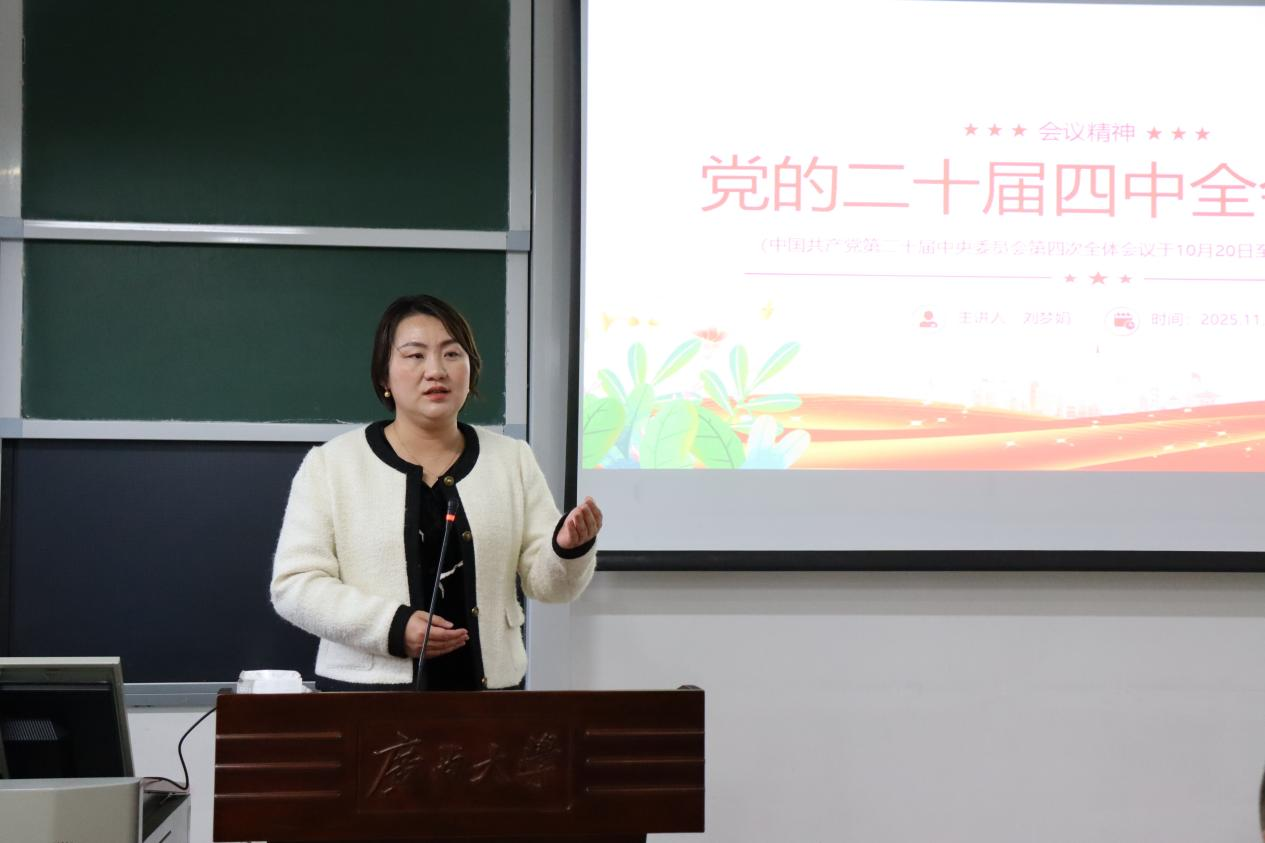 会上,公司党委副书记刘梦娟围绕党的二十届四中全会精神为员工干部讲授党课。她系统介绍了历届党的四中全会的定位和内涵,重点解读“十五五”时期经济社会发展需要把握的“六个必须坚持”,为员工干部开展班级政治学习活动提供明确指导。她强调,员工干部要深刻领会党的二十届四中全会精神,以高度的政治责任感和使命感,引领同学们坚定理想信念,增强“四个意识”、坚定“四个自信”、做到“两个维护”。