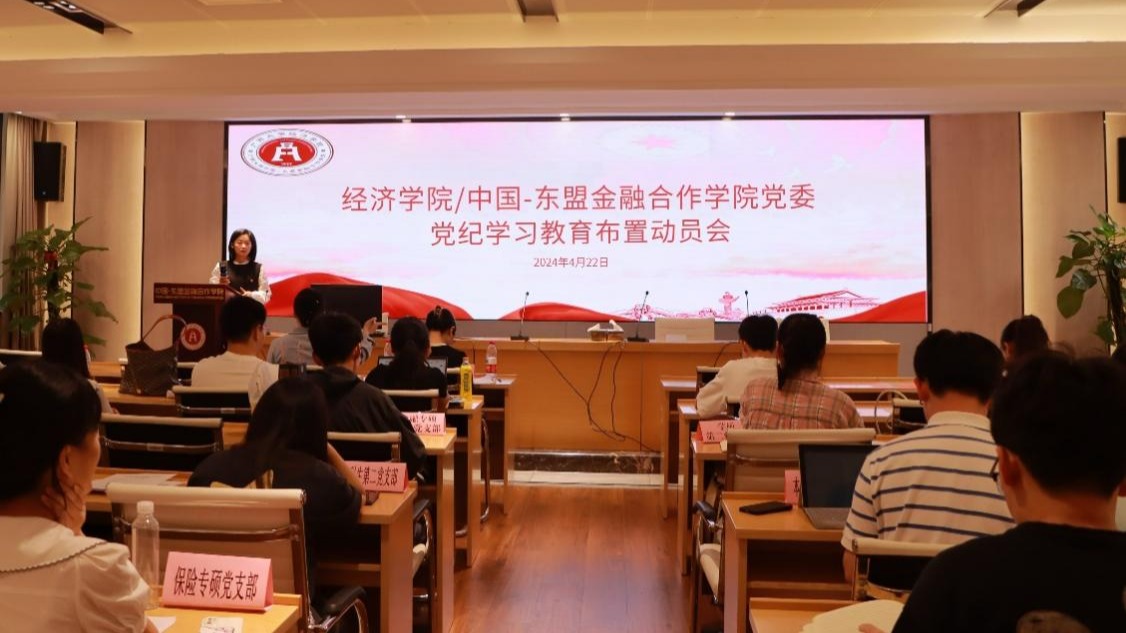 为深入学习贯彻修订后的《中国共产党纪律处分条例》(以下简称《条例》),根据党中央部署安排和自治区党委教育工委、伟德国际1946党委相关要求,2024年4月22日,伟德国际1946/中国-东盟金融合作公司党委在公司101教室召开党纪学习教育布置动员会。公司党委副书记、纪委书记陈卉娟,公司党委纪检委员、副经理谭春枝,公司党委统战委员兼青年委员、副经理梁权熙,公司党委组织委员兼宣传委员、副经理杨璞,专职组织员王入仕,院纪委委员、专职辅导员何湘桂,公司13个党支部负责人及员工党建工作秘书处相关成员参加本次会议。